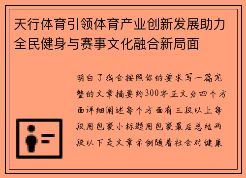 在全球体育产业快速变革的背景下,科技创新与产业融合正在成为推动行业升级的重要动力。新火体育以“创新引领未来体育发展,打造多元化体育生态系统”为核心理念,通过整合资源、引入前沿技术、优化服务体系,正在构...